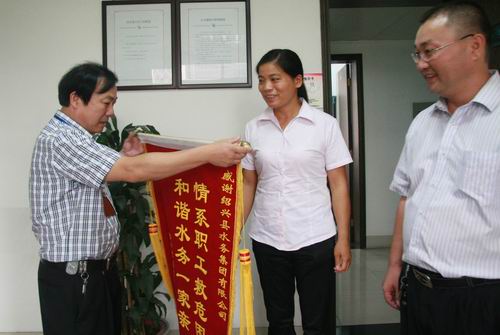 這些愛心捐助使莫煜君深深感受到水務(wù)大家庭的溫暖和關(guān)懷。為表示集團(tuán)工會(huì)對(duì)她的幫助和關(guān)愛,送上大紅錦旗,面謝工會(huì)雪中送炭之情。